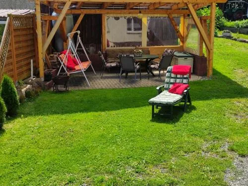 More information about ErzstüblFerienhaus Johanna & Ferienwohnung Thum in Weischlitz provides comfortable accommodations featuring a garden, outdoor seating area, and free on-site private parking. The property includes modern amenities such as a private bathroom, kitchen, and garden views. Guests have access to a barbecue, tea and coffee maker, and a dedicated dining space.
