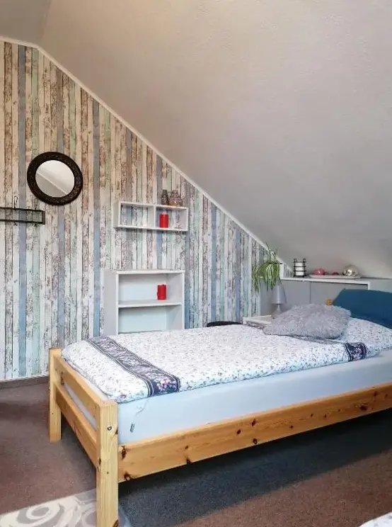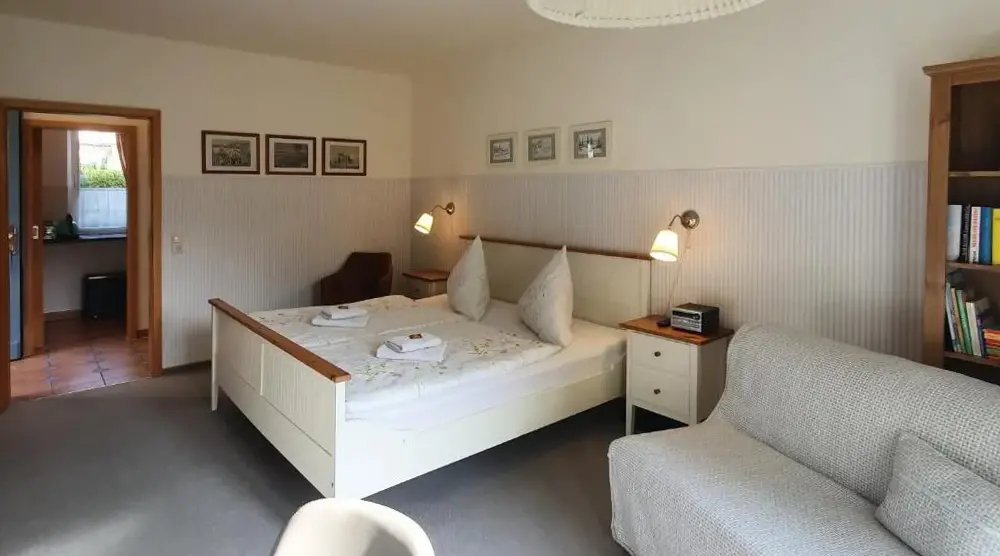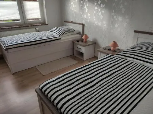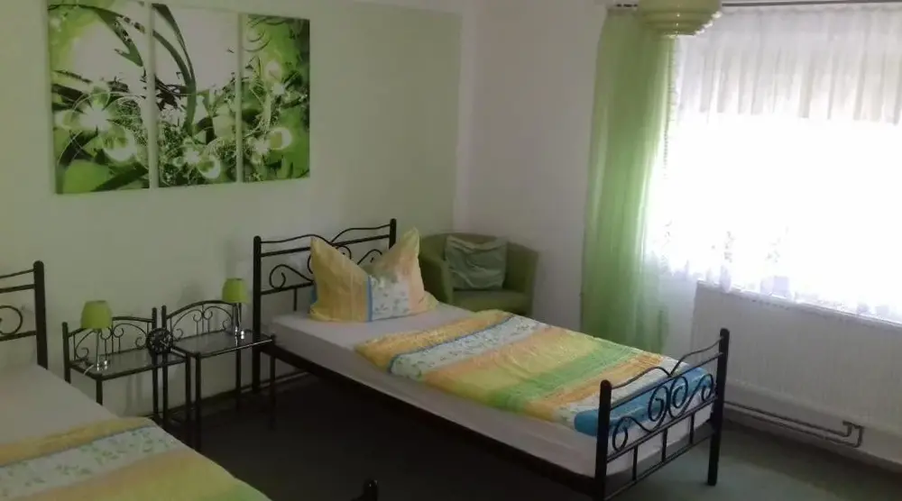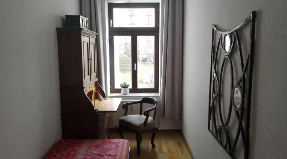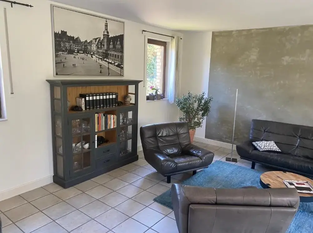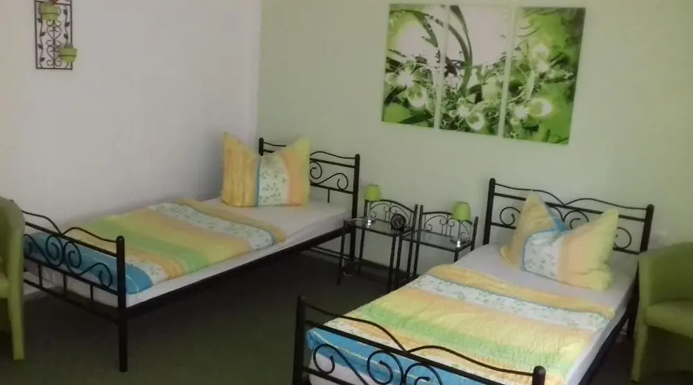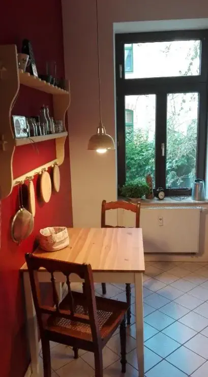 More information about Fewo SchuchBastians Herberge in Leipzig provides spacious accommodations featuring a two-bedroom apartment with a living room and private entrance. The ground-floor unit includes garden views, modern amenities like free WiFi, a fully equipped kitchenette, washing machine, and work desk. Additional facilities consist of a dining area, sofa bed, and parquet flooring. Situated 8.