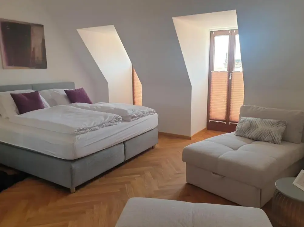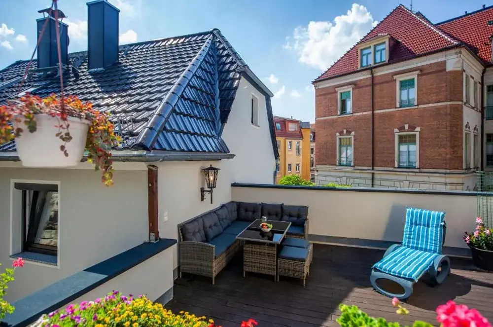 More information about Ferienwohnung mit AegidienblickModernes Apartment an der Frauenkirche provides spacious accommodations in Dresden's city center, featuring two bedrooms, a living room, and modern amenities including air conditioning, a kitchenette, balcony, and washing machine. The property includes a sun terrace, elevator, 24-hour front desk, minimarket, outdoor seating area, hairdresser/beautician services, family rooms, and bicycle parking.