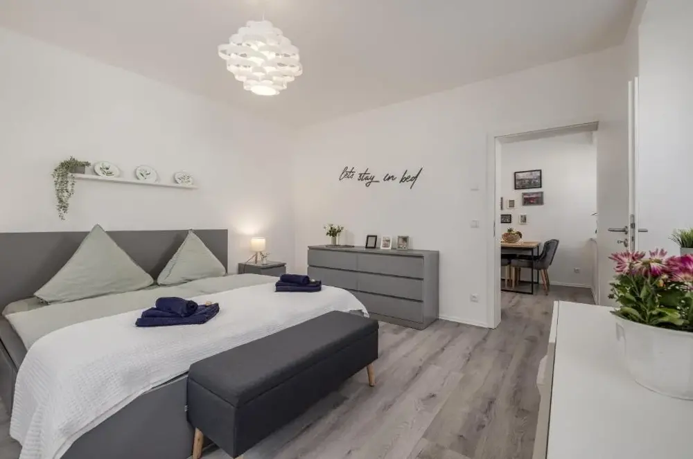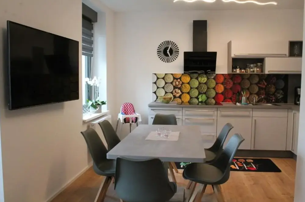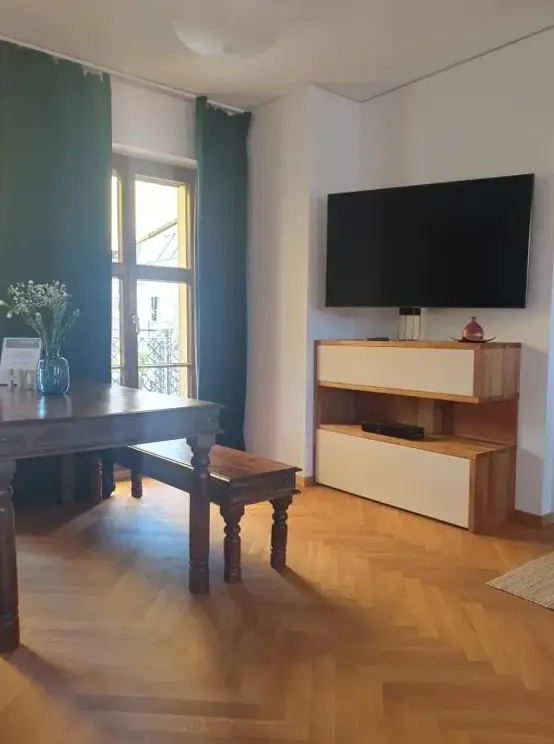 More information about Modernes Apartment an der FrauenkircheFerienwohnungen An der Fichtelbergbahn offers spacious, recently renovated apartments featuring two bedrooms and a living room. Guests can enjoy garden and mountain views from the inner courtyard. The accommodations include a fully equipped kitchenette, bathroom with shower, and dining area. Additional amenities like a lounge, minimarket, indoor play area, and free WiFi enhance the experience.