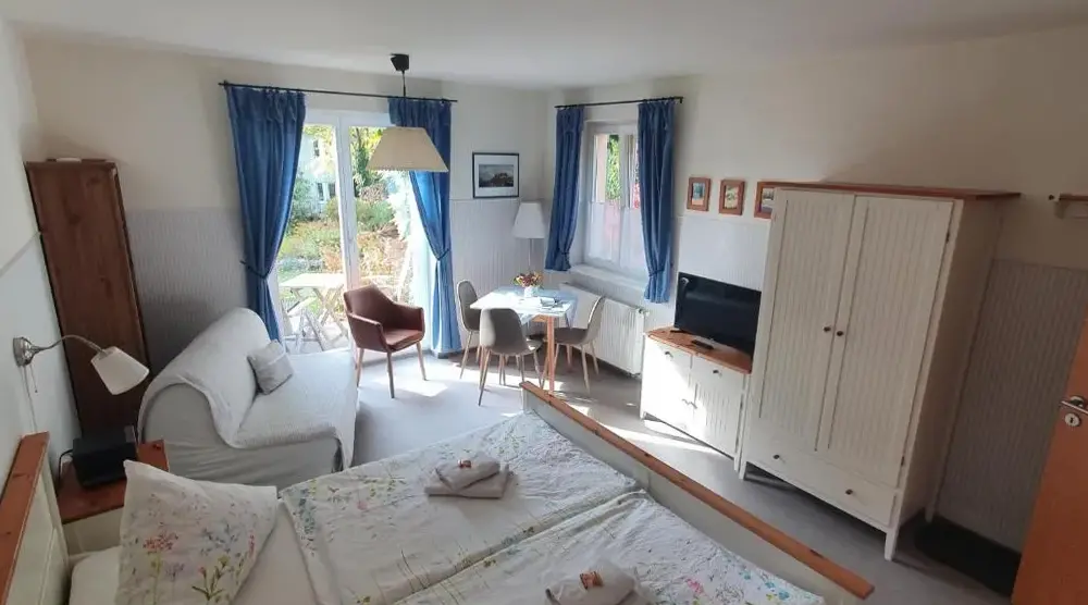 More information about Ferienwohnung am Dresdner ElbhangHaeuslein-Waldesruh in Muldenberg is a holiday home offering one bedroom, a bathroom, and a spacious living room. The property features a fully equipped kitchenette, balcony, and terrace, along with a beautifully maintained garden. Guests can relax on the terrace’s outdoor seating area or take advantage of free WiFi throughout the premises. Situated 6.