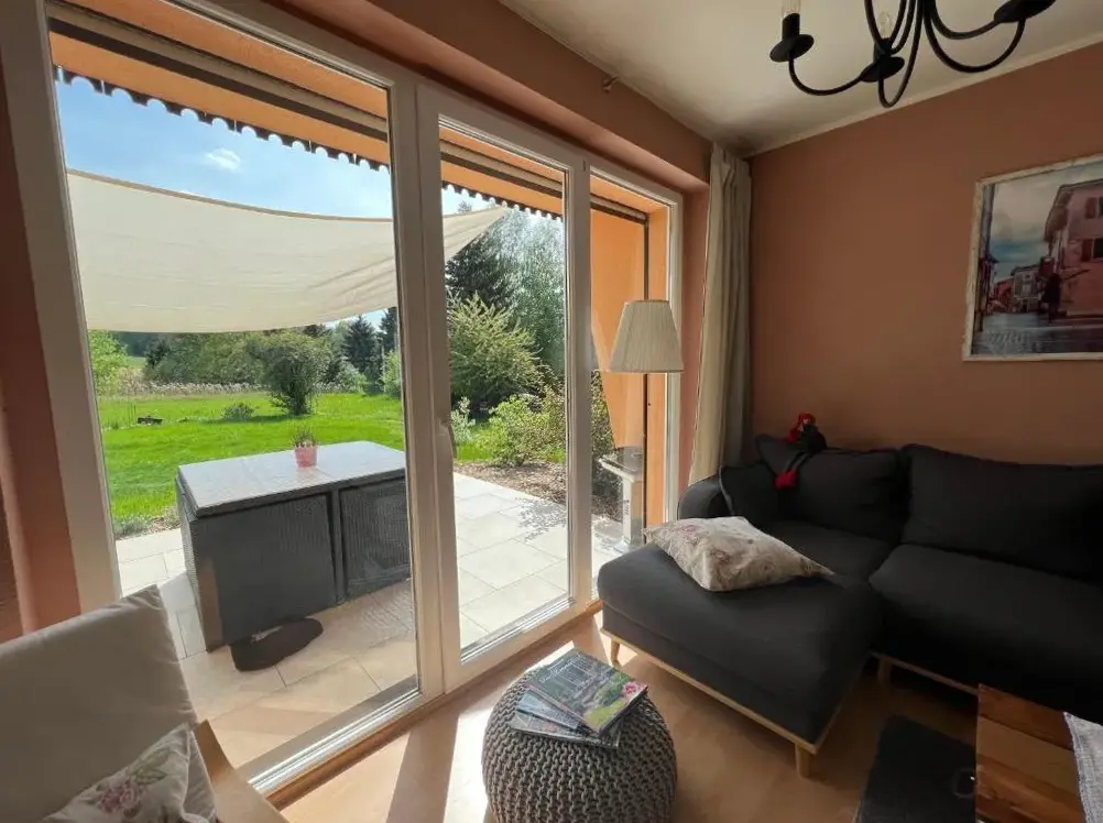 More information about Haeuslein-WaldesruhClub Dres in Bockau offers a spacious apartment featuring two bedrooms and a bathroom. Situated on the ground floor, this unit has a private entrance and tiled flooring. The property includes outdoor spaces like a garden and terrace offering mountain vistas, complete with outdoor furniture and a dining area.